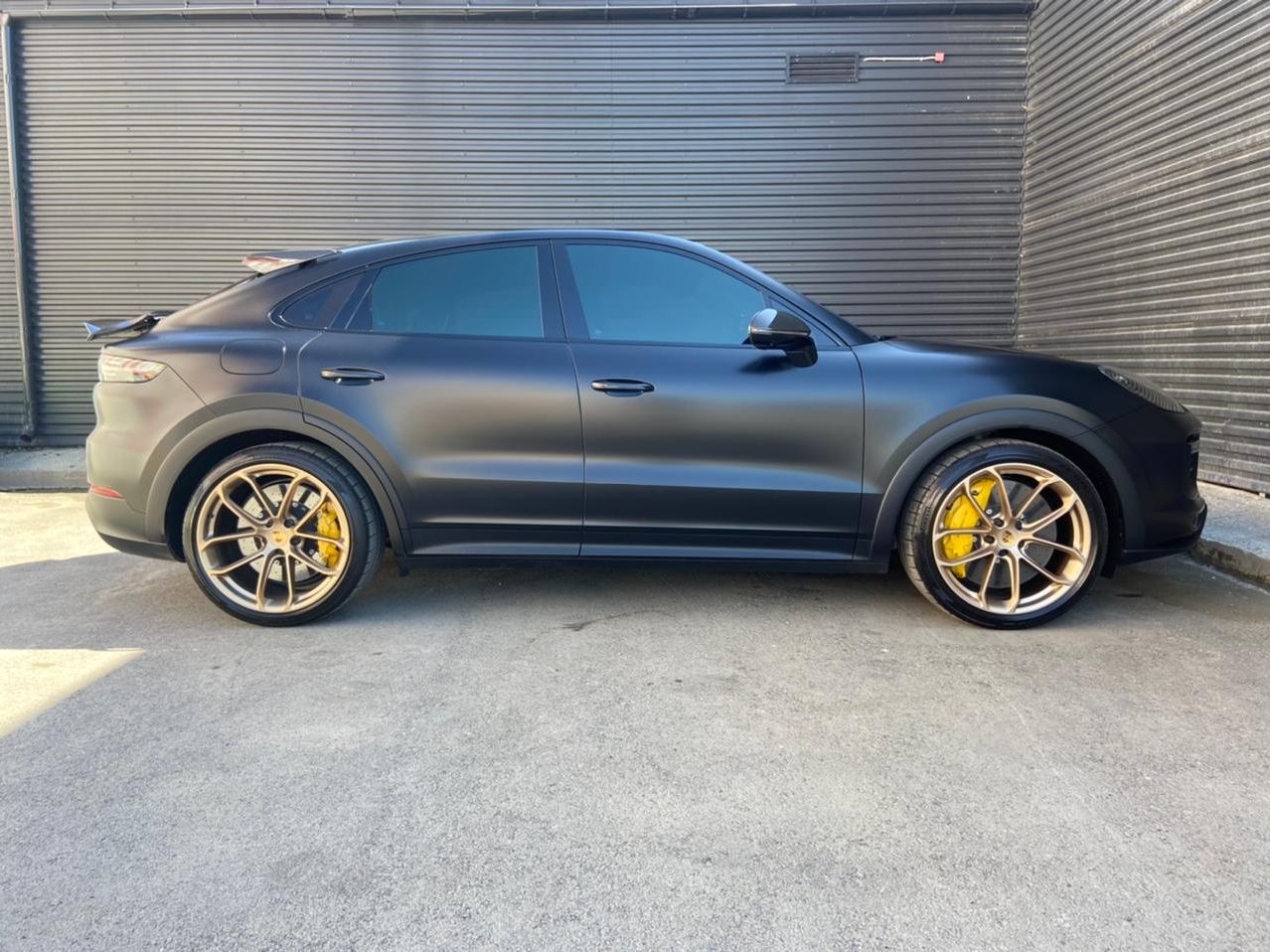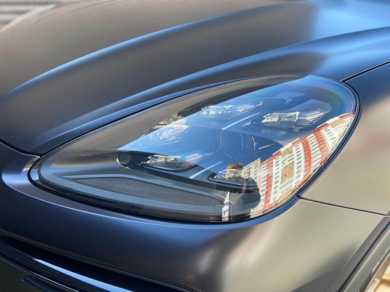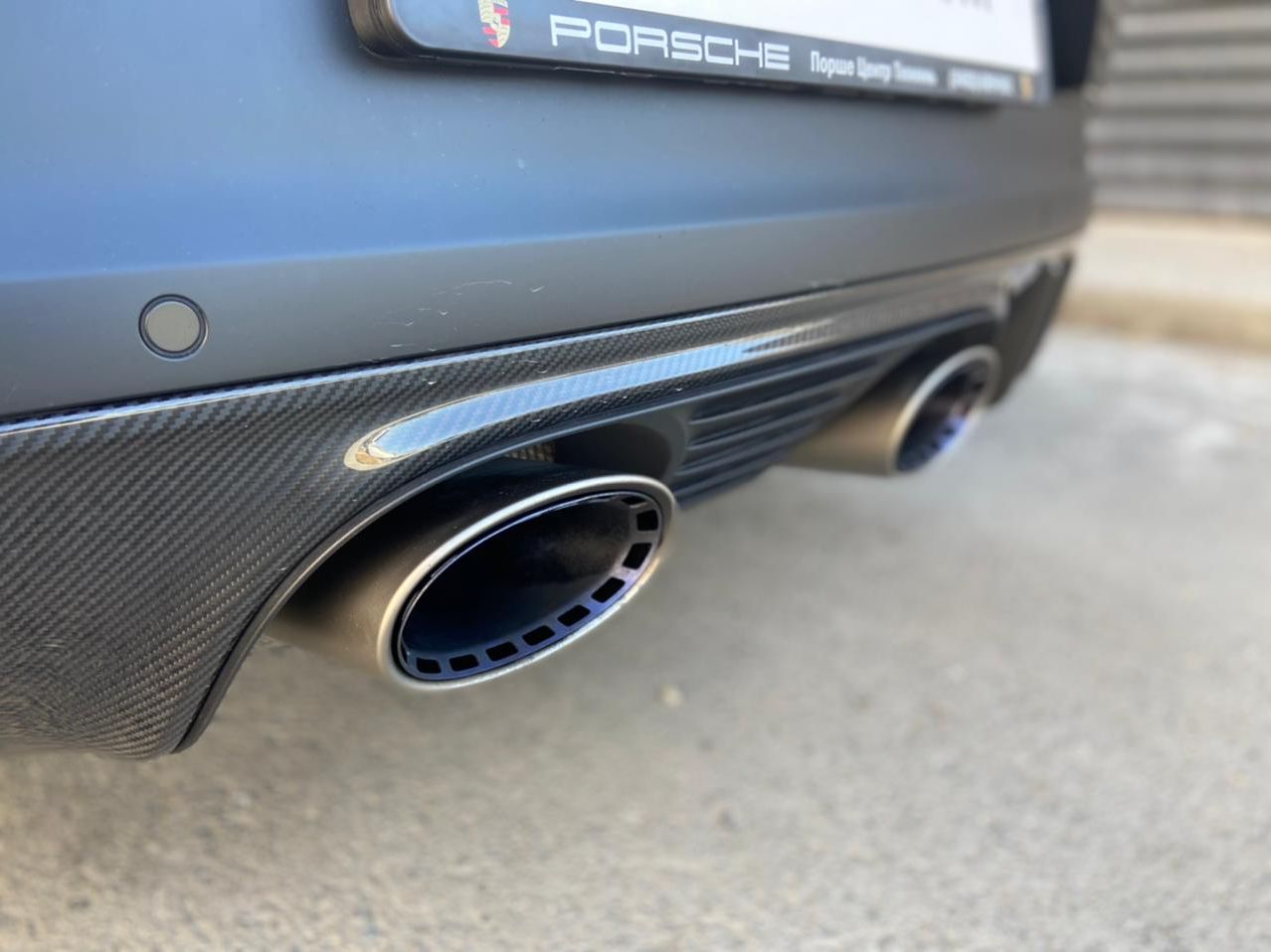 Логотип 'PORSCHE' окрашен в черный матовый цвет, обозначение модели - в цвет кузова