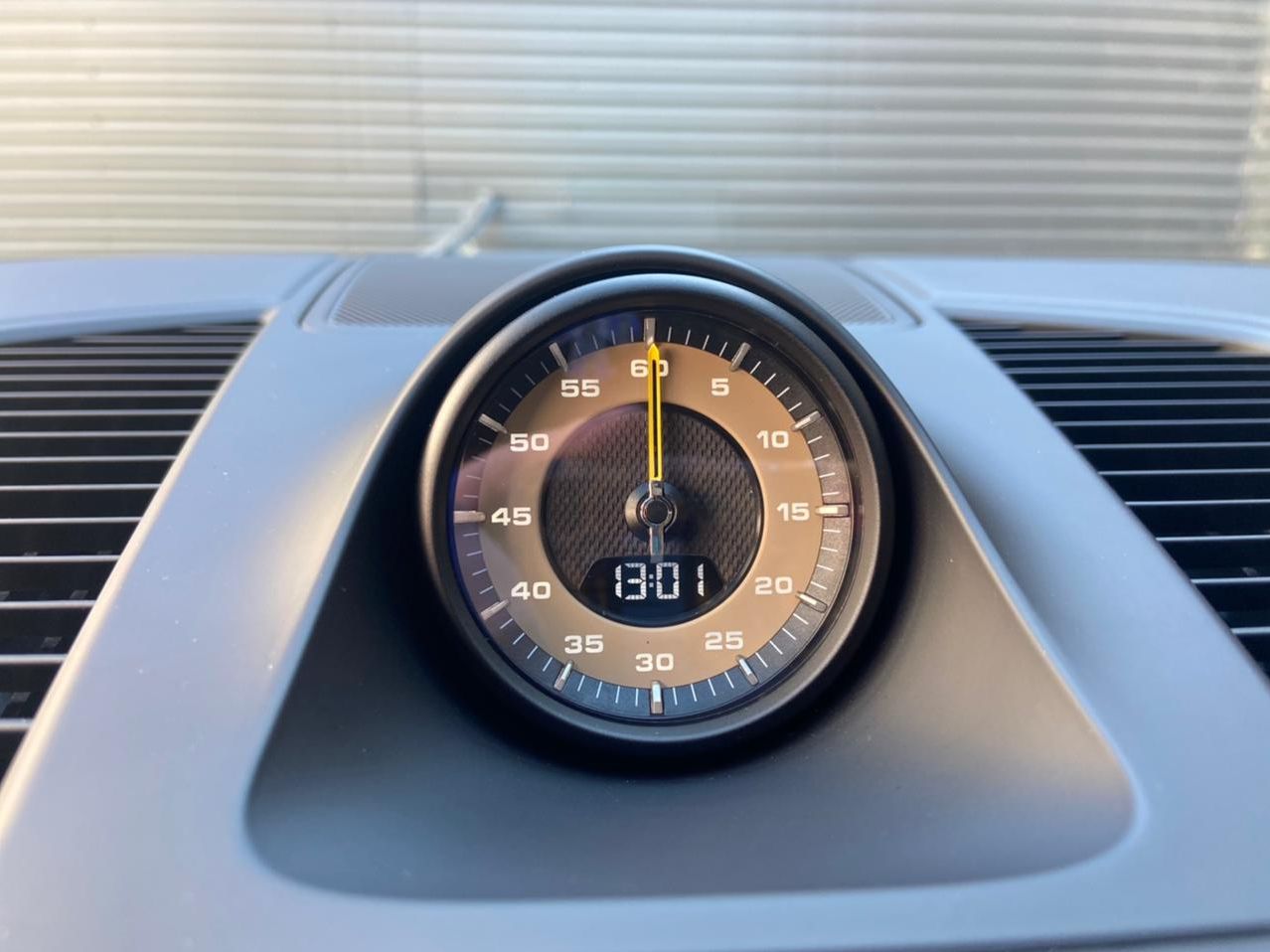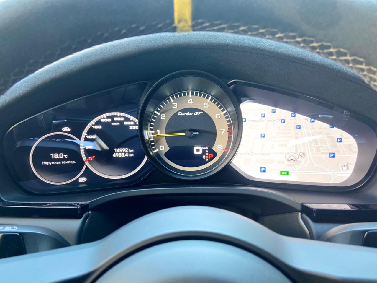 Центрально расположенный аналоговый тахометр с cерым циферблатом (Silver Grey) со стрелкой желтого цвета (Racing Yellow) и логотипом "turbo GT"