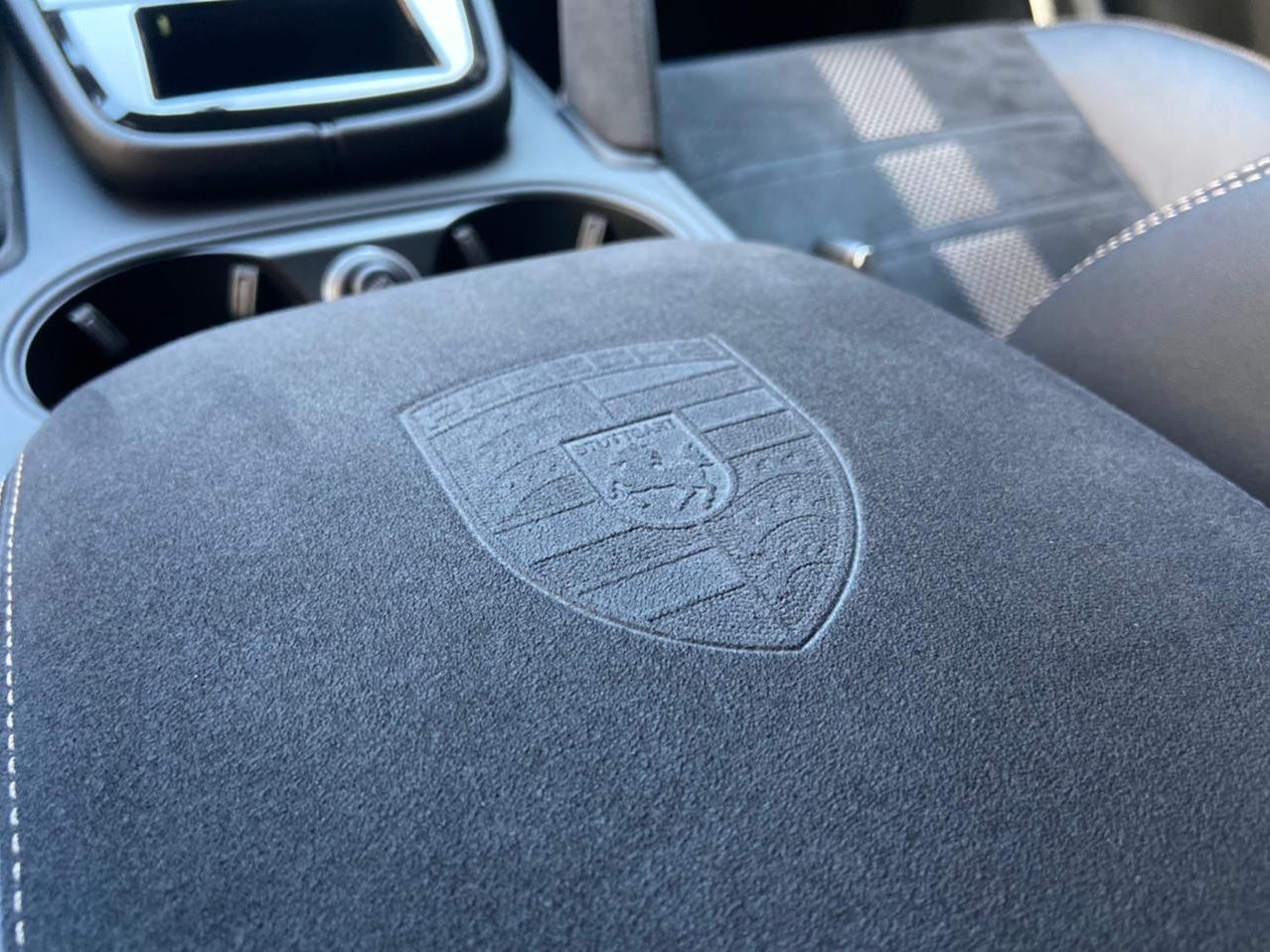 Логотип "PORSCHE", встроенный в световую полосу сзади, и обозначение модели на двери багажника окрашены в черный матовый цвет